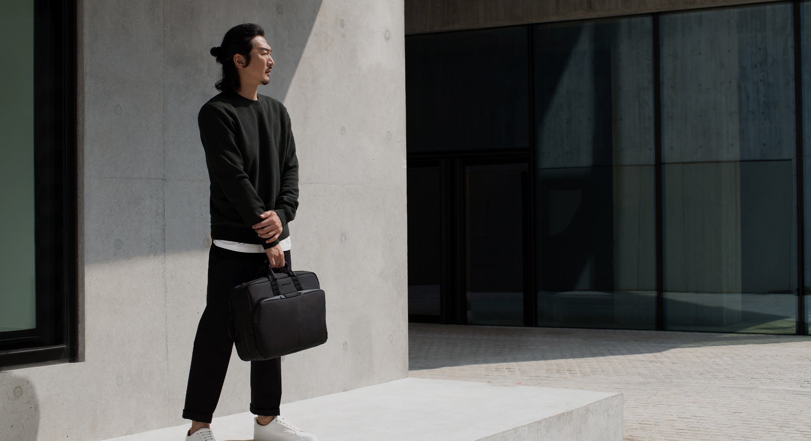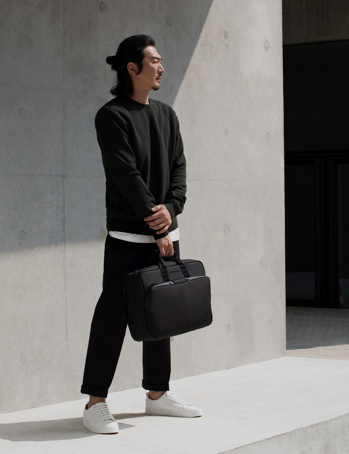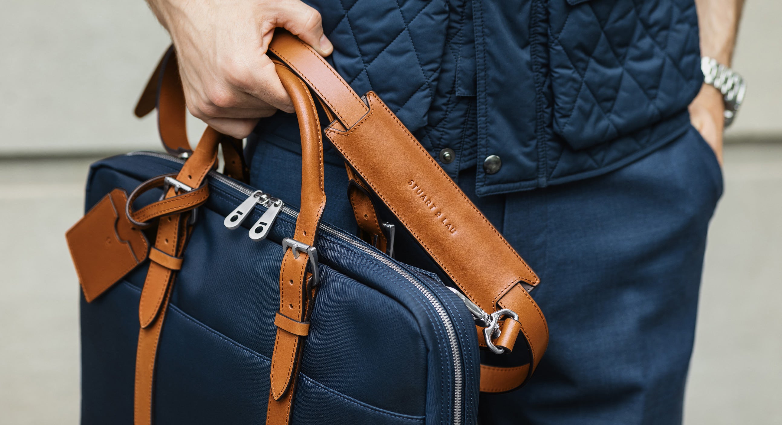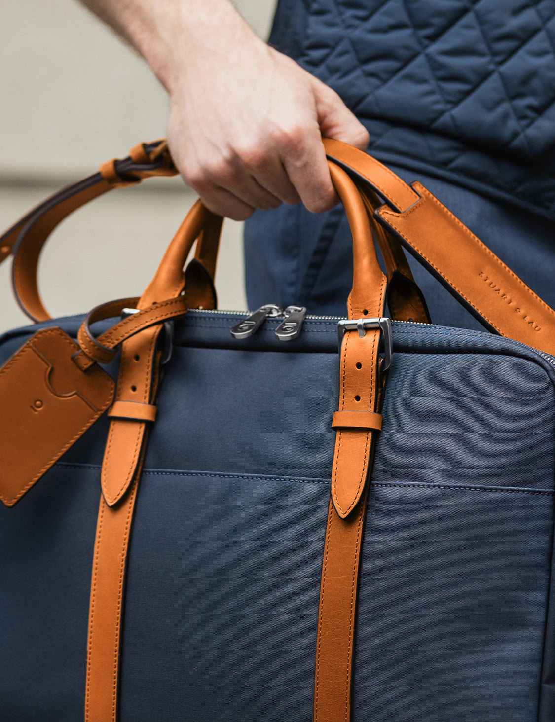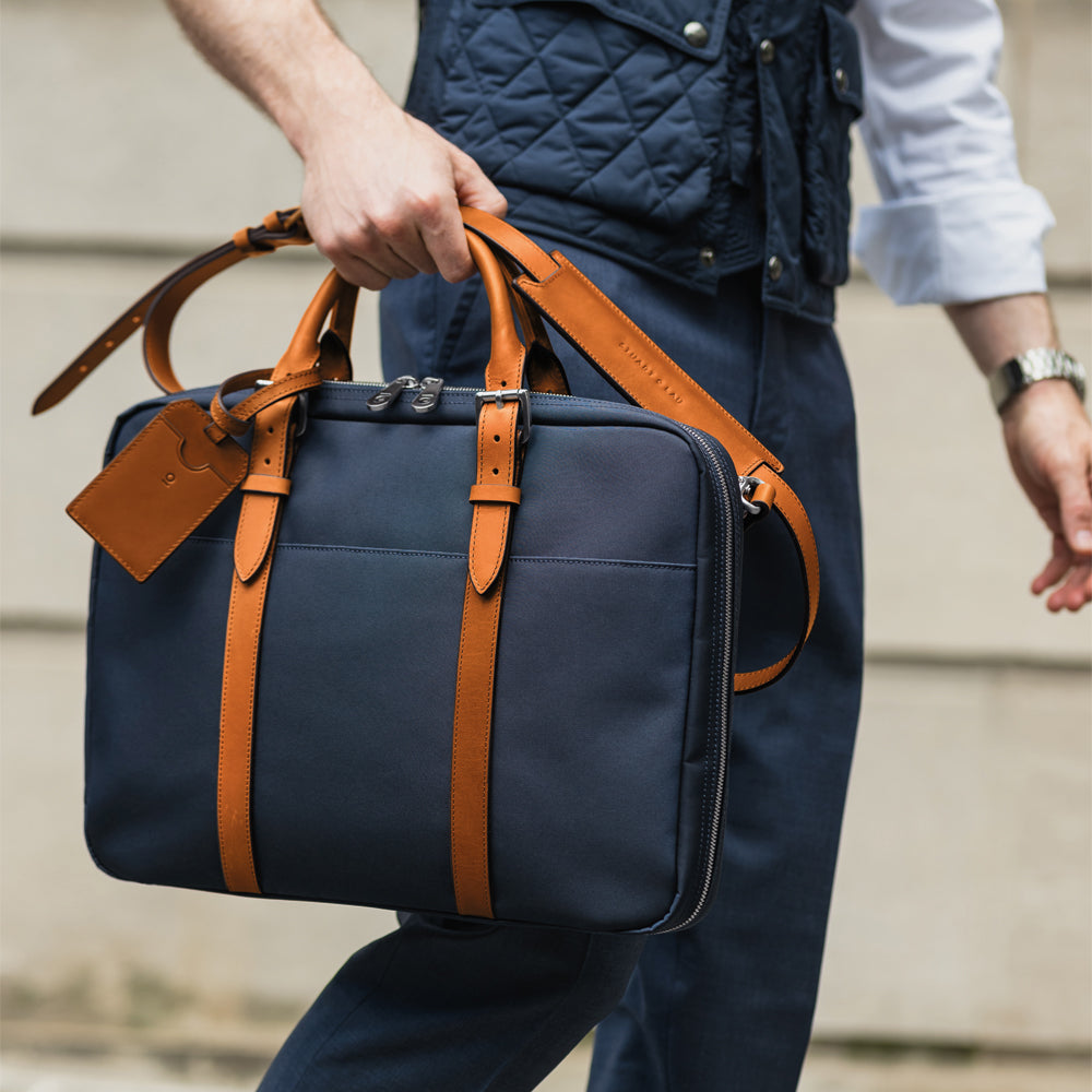 The Cary Briefcase – featuring a convenient sleeve for rolling luggage, making longer journeys a breeze.
