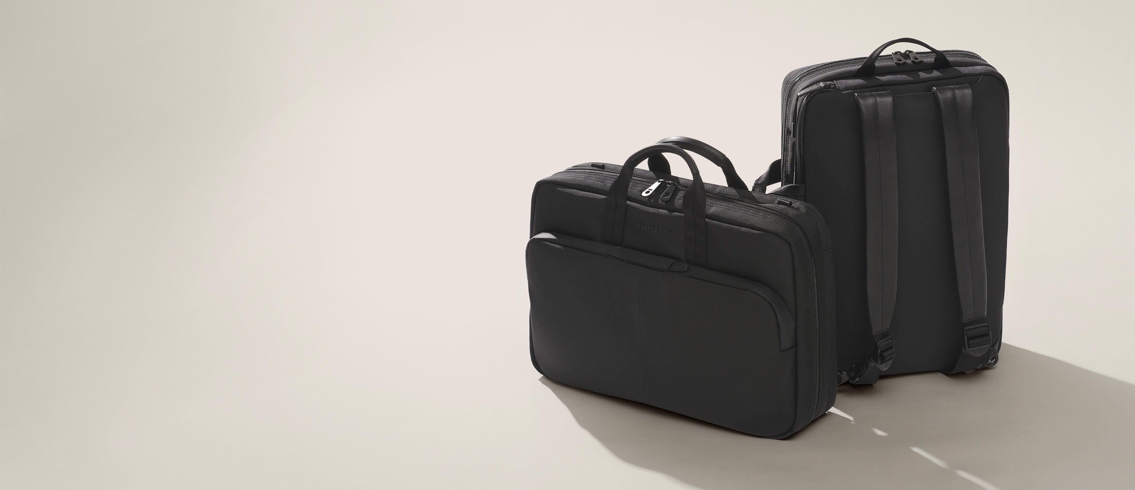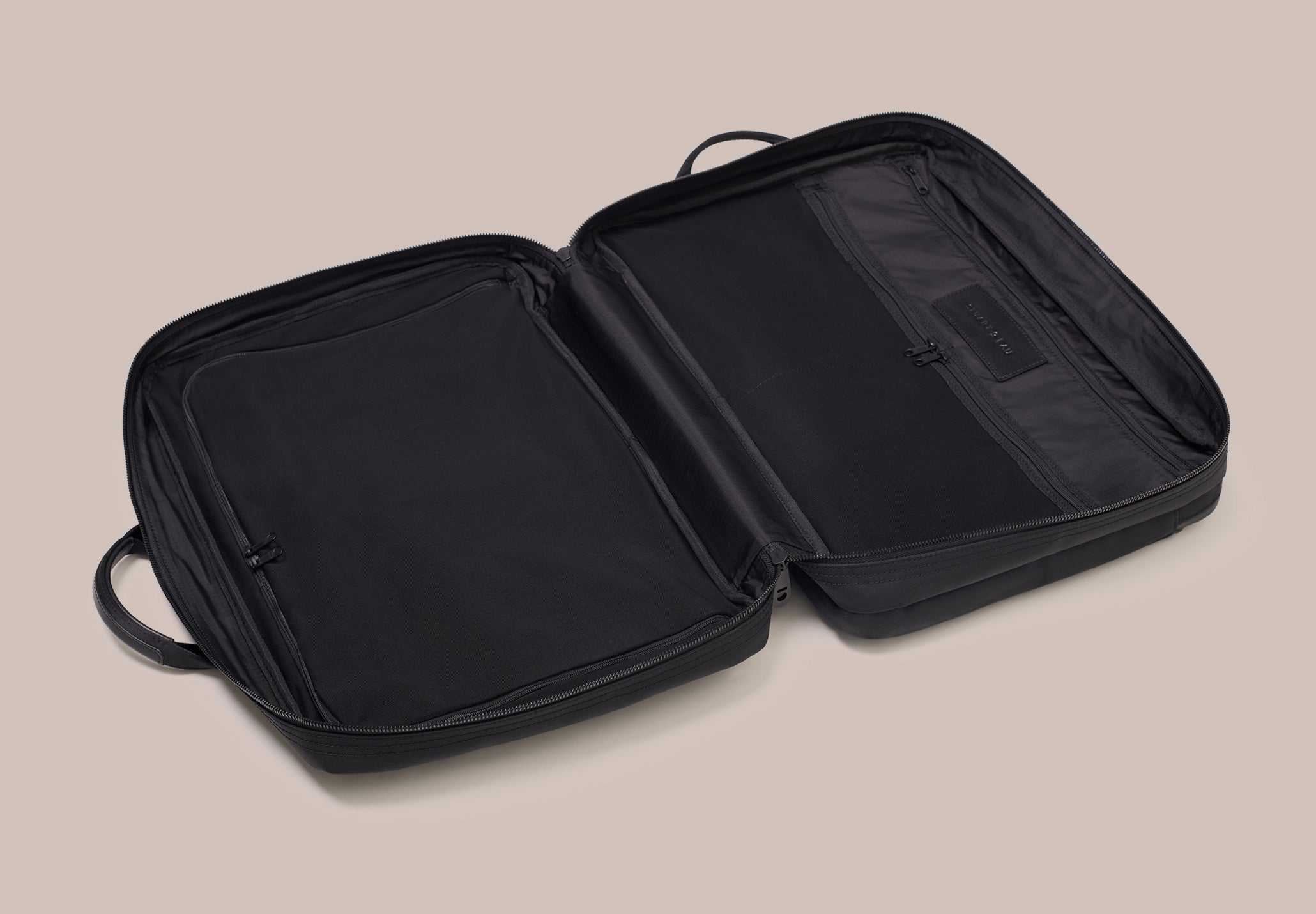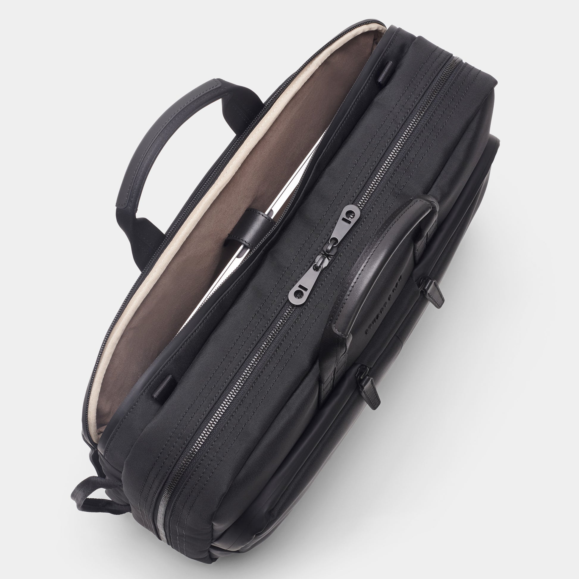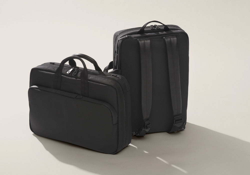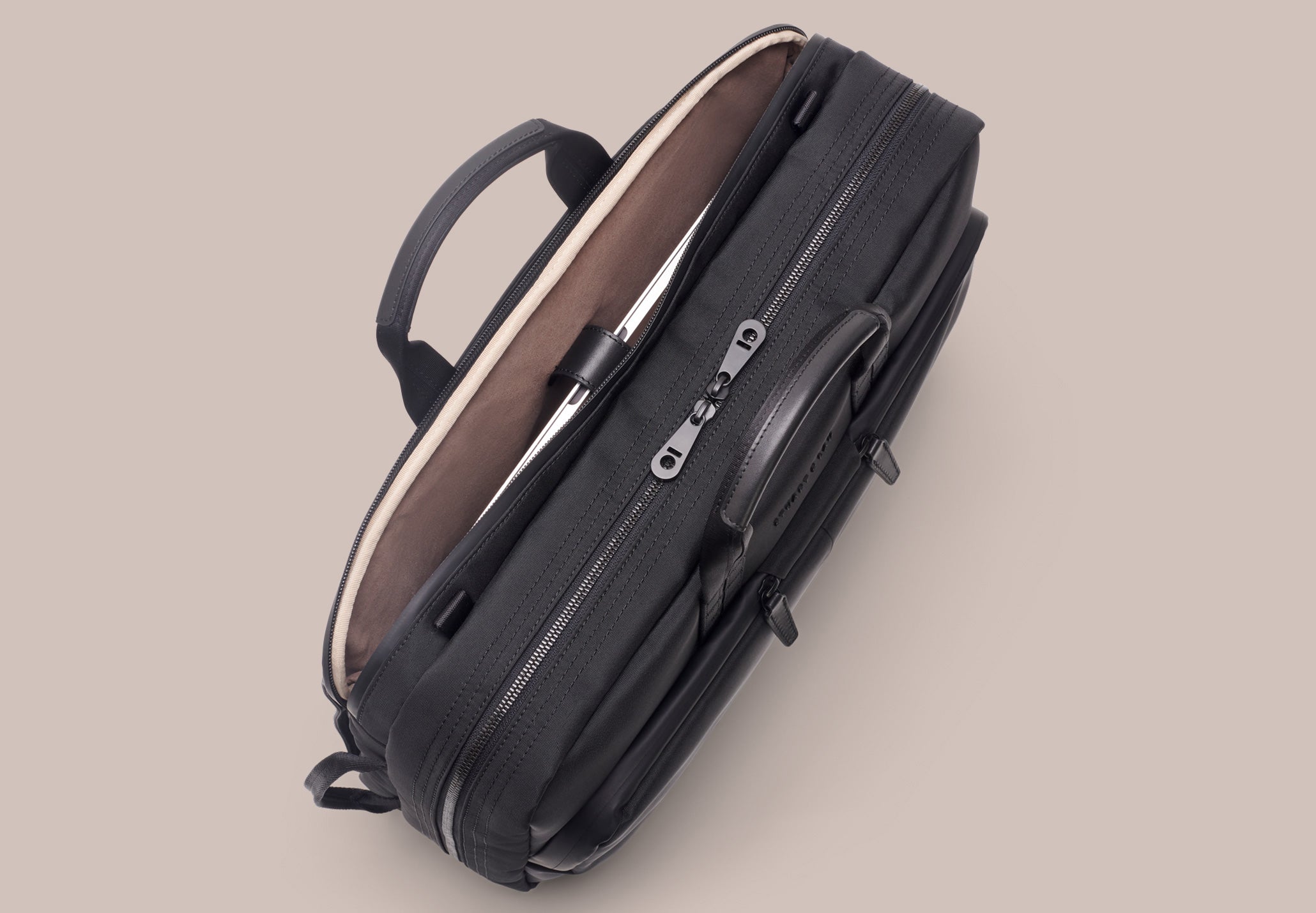 Maximum function in minimalist form, The Campaign is a clever 3-way carry that combines the best of briefcase and backpack all in one.