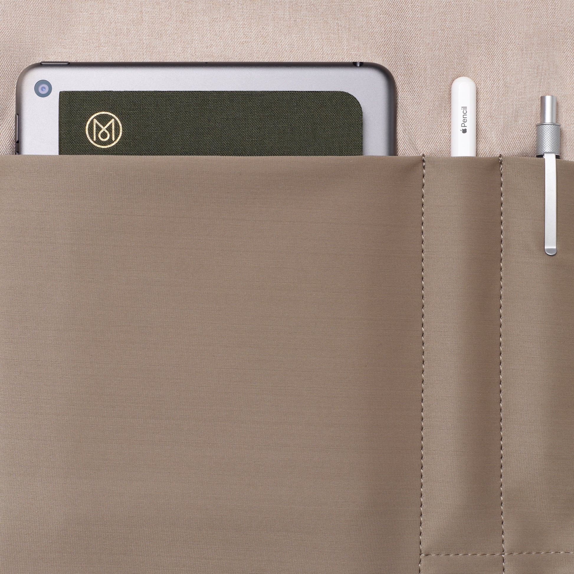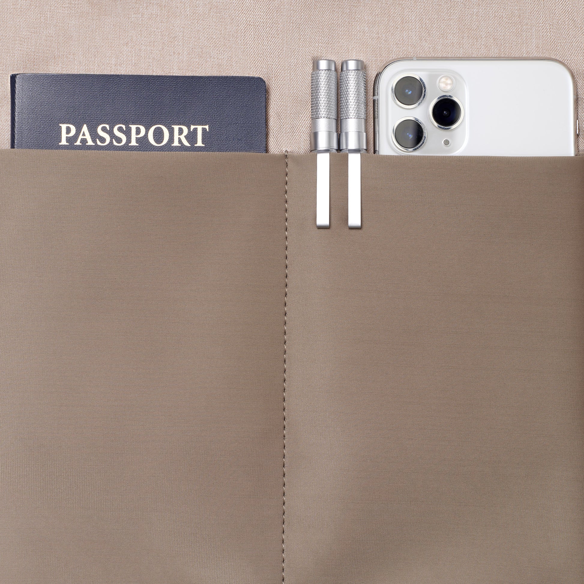 Cleverly concealed in the back pocket, our add-a-bag sleeve satisfies the savvy traveler in sophisticated style
