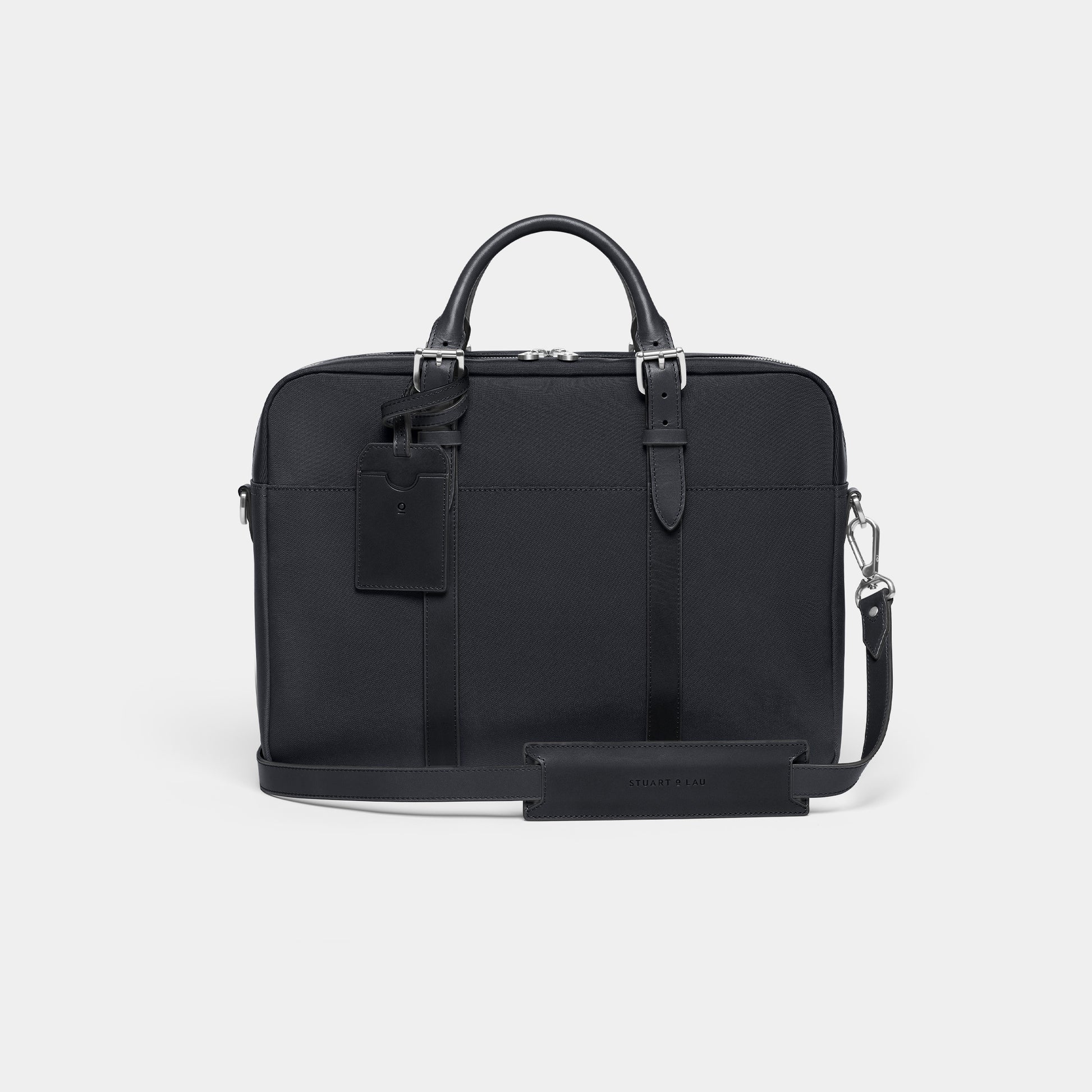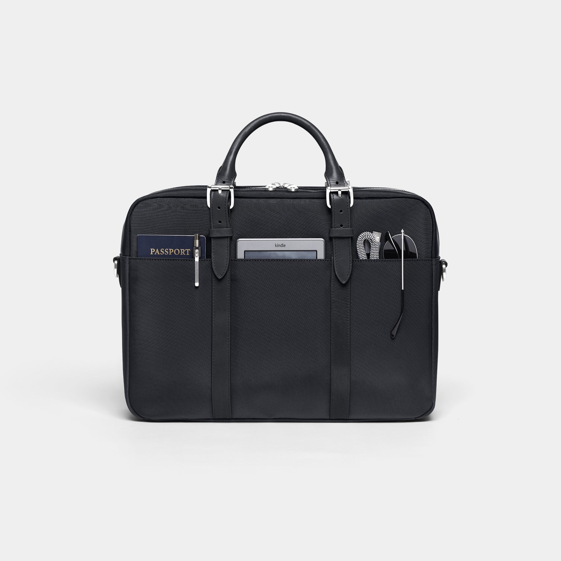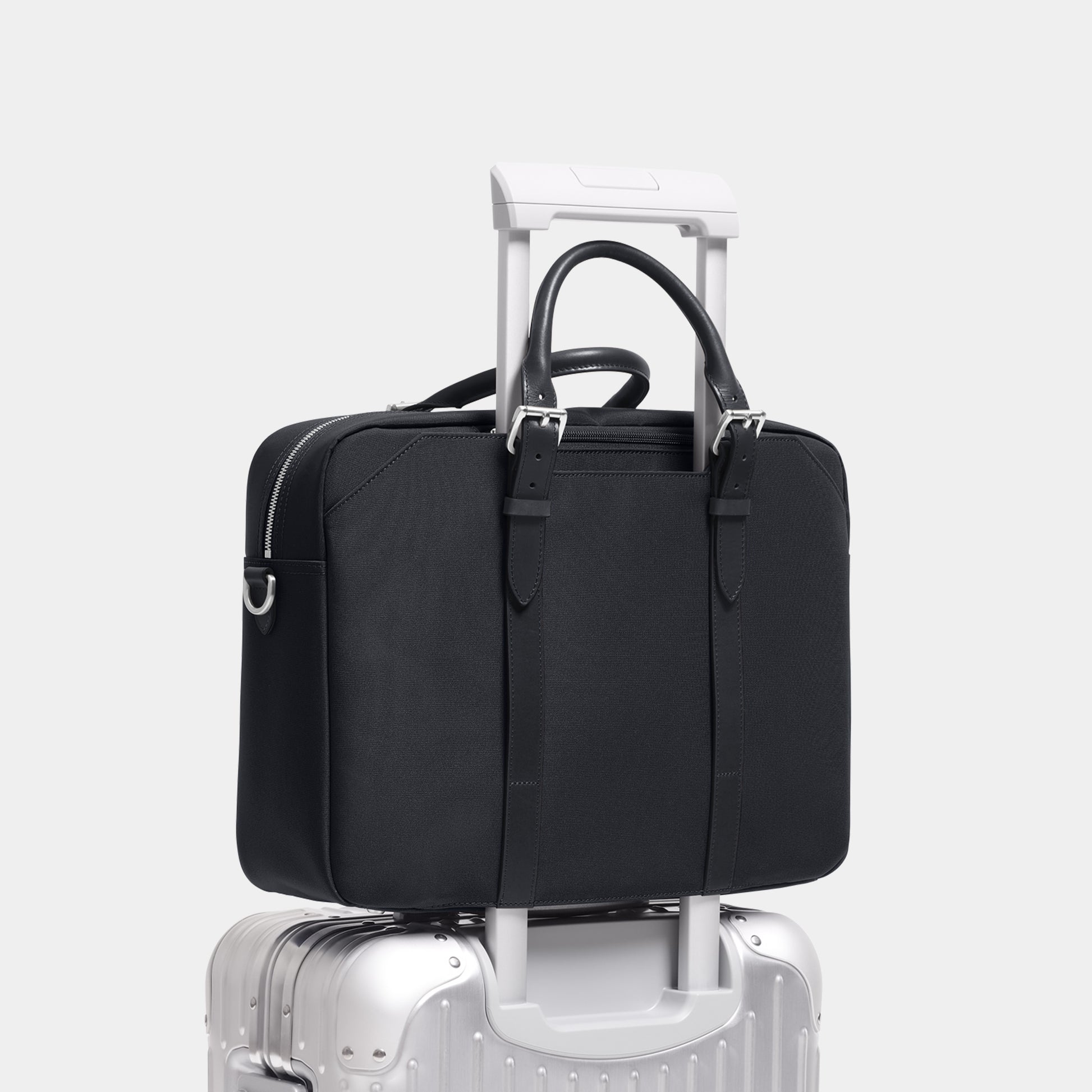 Our original briefcase, the Cary is crafted from proprietary DuraLite™ fabric, an ultra lightweight, high tenacity twill with a waterproof backing. Smart sleeves put items at hand, while the main compartment secures valuables in tidy order. Features a removable laptop sleeve, pass-through for luggage, and our signature umbrella slot. Finished with full grain Italian leather handles, strap, and trim — the Cary is as timeless as it is versatile.