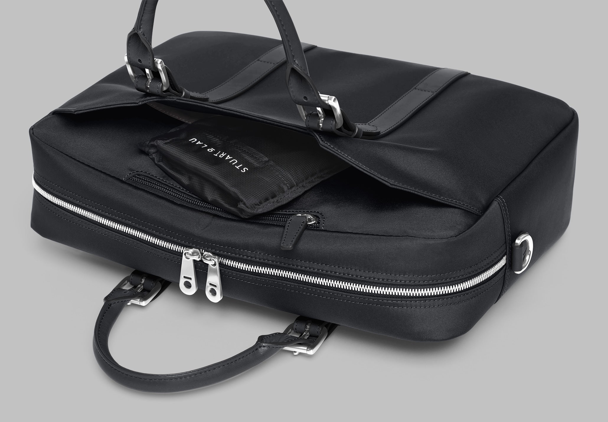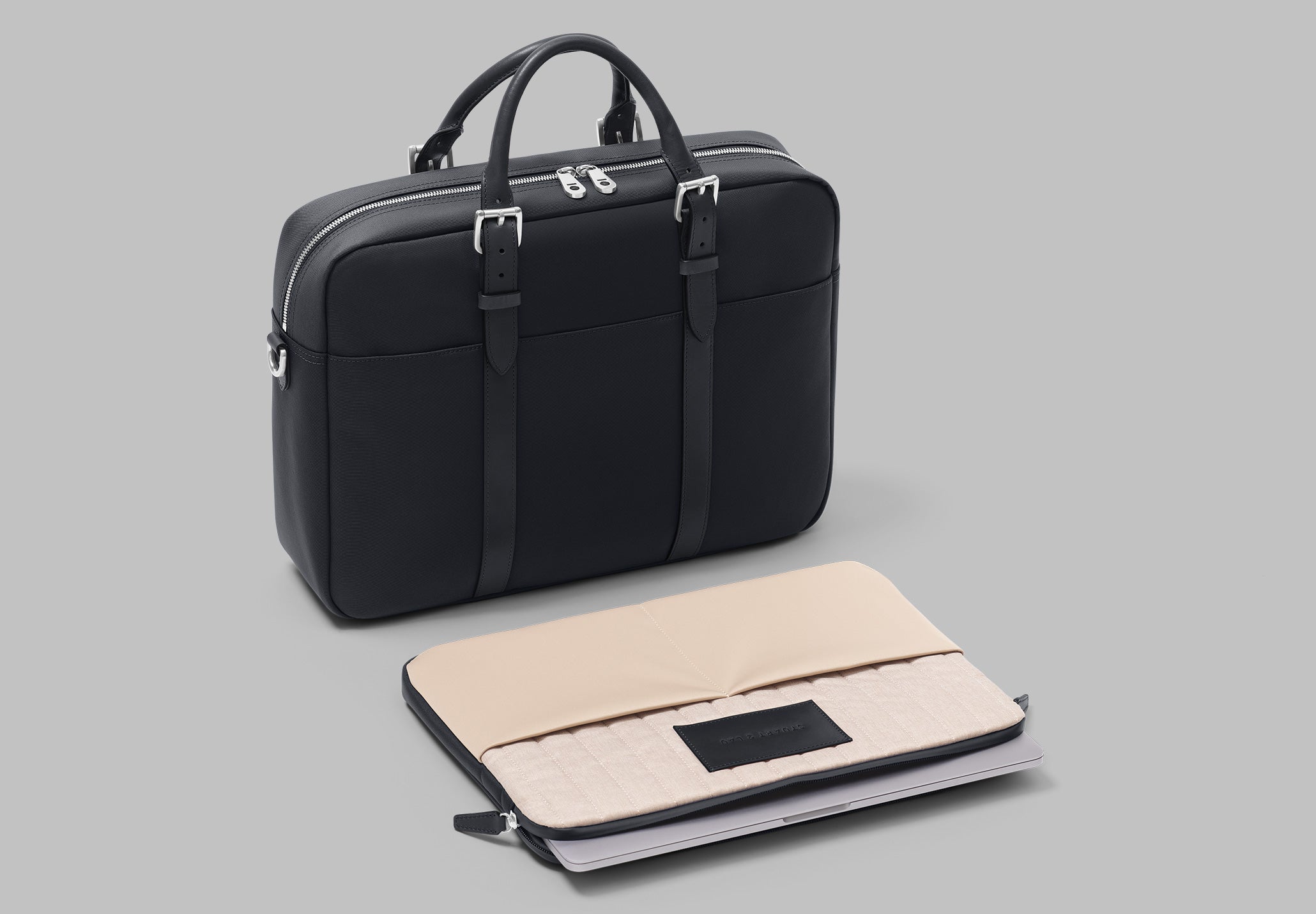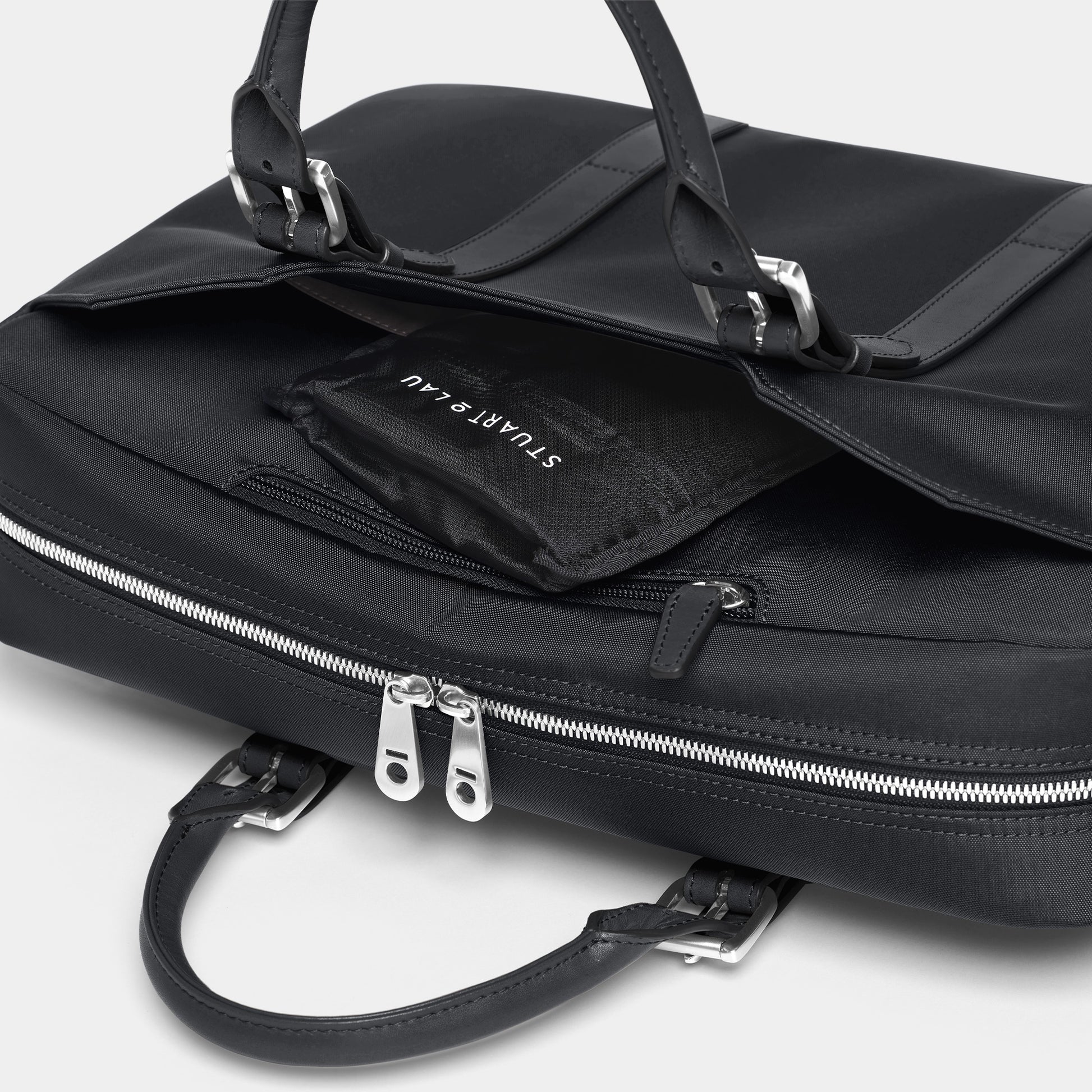 Our original briefcase, the Cary is crafted from proprietary DuraLite™ fabric, an ultra lightweight, high tenacity twill with a waterproof backing. Smart sleeves put items at hand, while the main compartment secures valuables in tidy order. Features a removable laptop sleeve, pass-through for luggage, and our signature umbrella slot. Finished with full grain Italian leather handles, strap, and trim — the Cary is as timeless as it is versatile.
